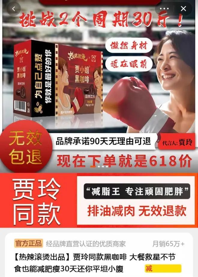 2024年2月,由贾玲执导并主演的电影《热辣滚烫》在中国内地上映,电影中励志减肥的故事她激励着众多爱美人士。随后,一批打着“贾玲同款”旗号的商家未经其同意将贾玲形象用于广告宣传。