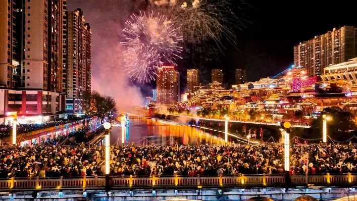 恩施宣恩仙山贡水璀璨烟花喜迎春节。 (鄂文旅 供图)