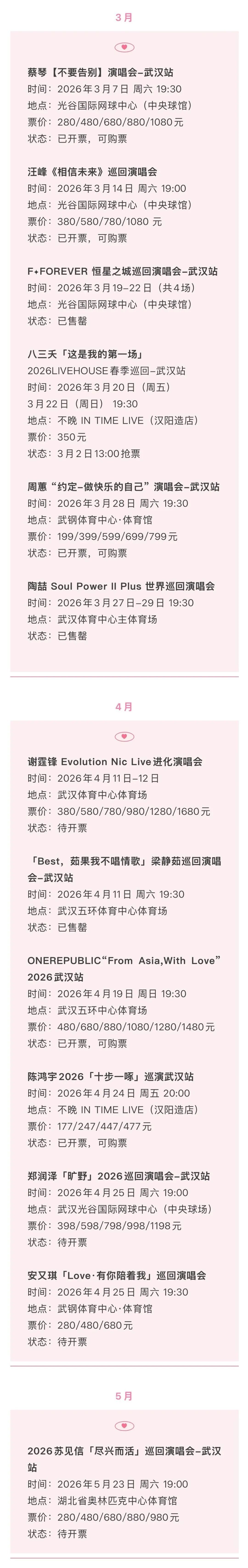 还有这些明星在武汉的演唱会