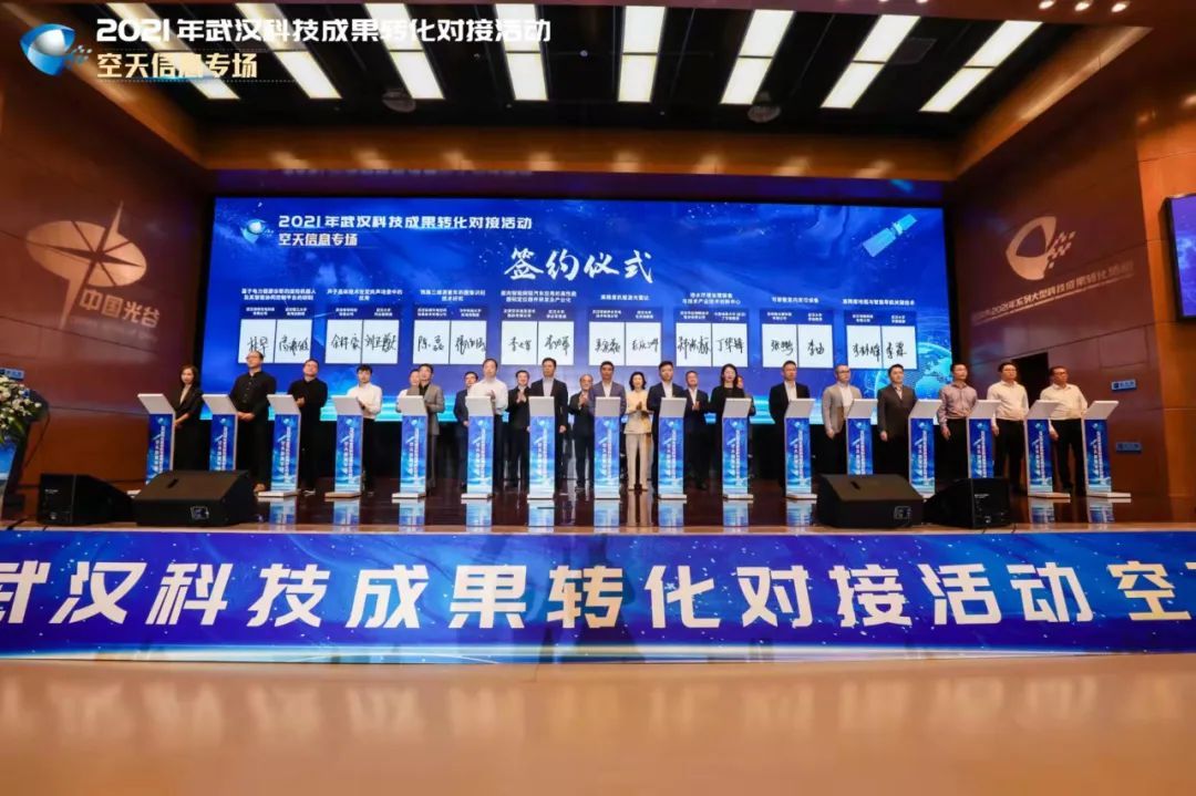 上月在光谷举办的“武汉科技成果转化对接活动·空天信息专场”签约现场