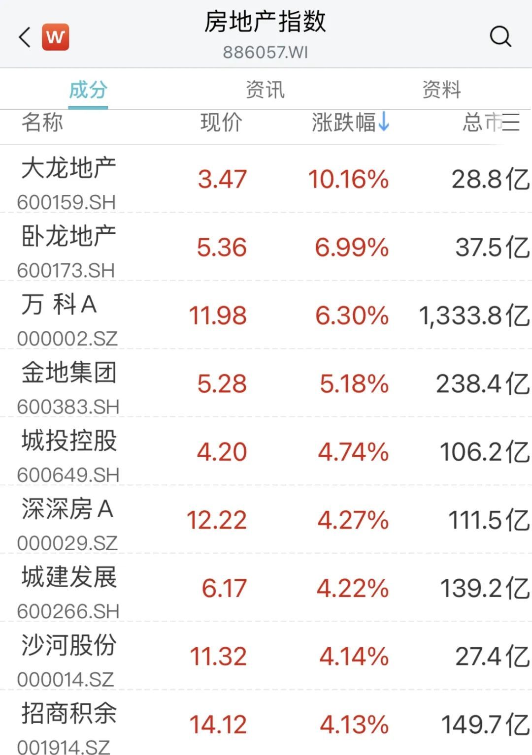 房地产开发板块异动拉升