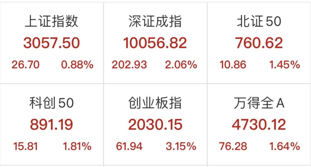 一起来看下上午的市场情况。今天的A股三大指数持续拉升,创业板指领涨,截至午间收盘,沪指涨0.88%,深成指涨2.06%,创业板指涨3.15%。北向资金净买入超70亿元。