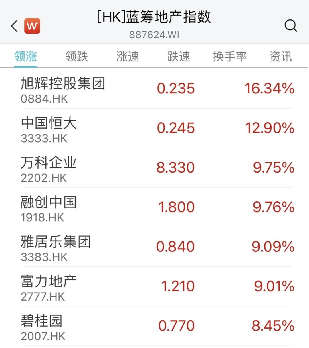 港股内房股同样走高,旭辉控股集团、中国恒大均涨超10%,融创中国、富力地产、碧桂园等涨超8%。