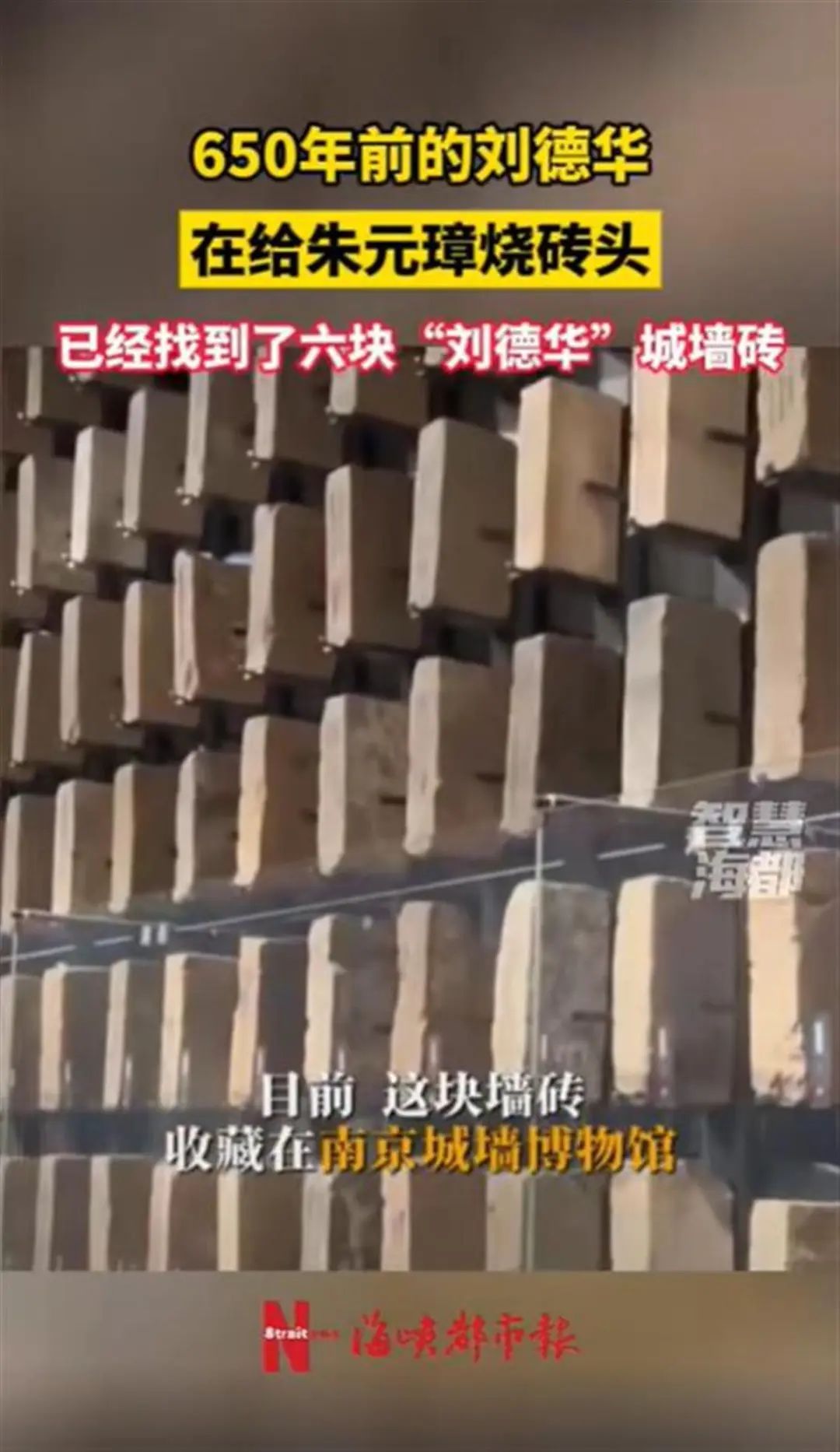 据陕视新闻1月20日报道:南京城墙博物馆里有一块著名的“刘德华”砖。