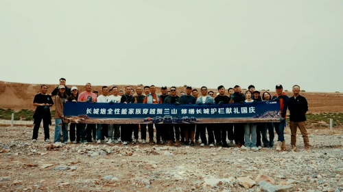 穿越贺兰山途中,长城炮还携手炮火联盟宁夏大队修缮长城护栏,彼此信任,互帮互助,以公益初心,致敬越野精神、爱国精神,为祖国75周岁生日献礼。