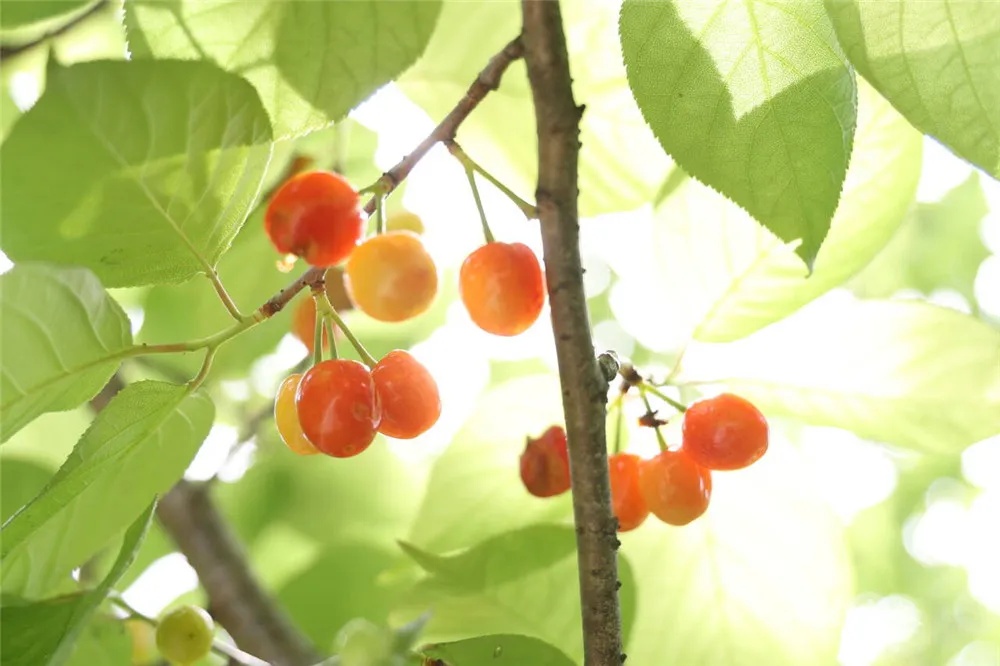 大部分樱桃果还是青黄的颜色