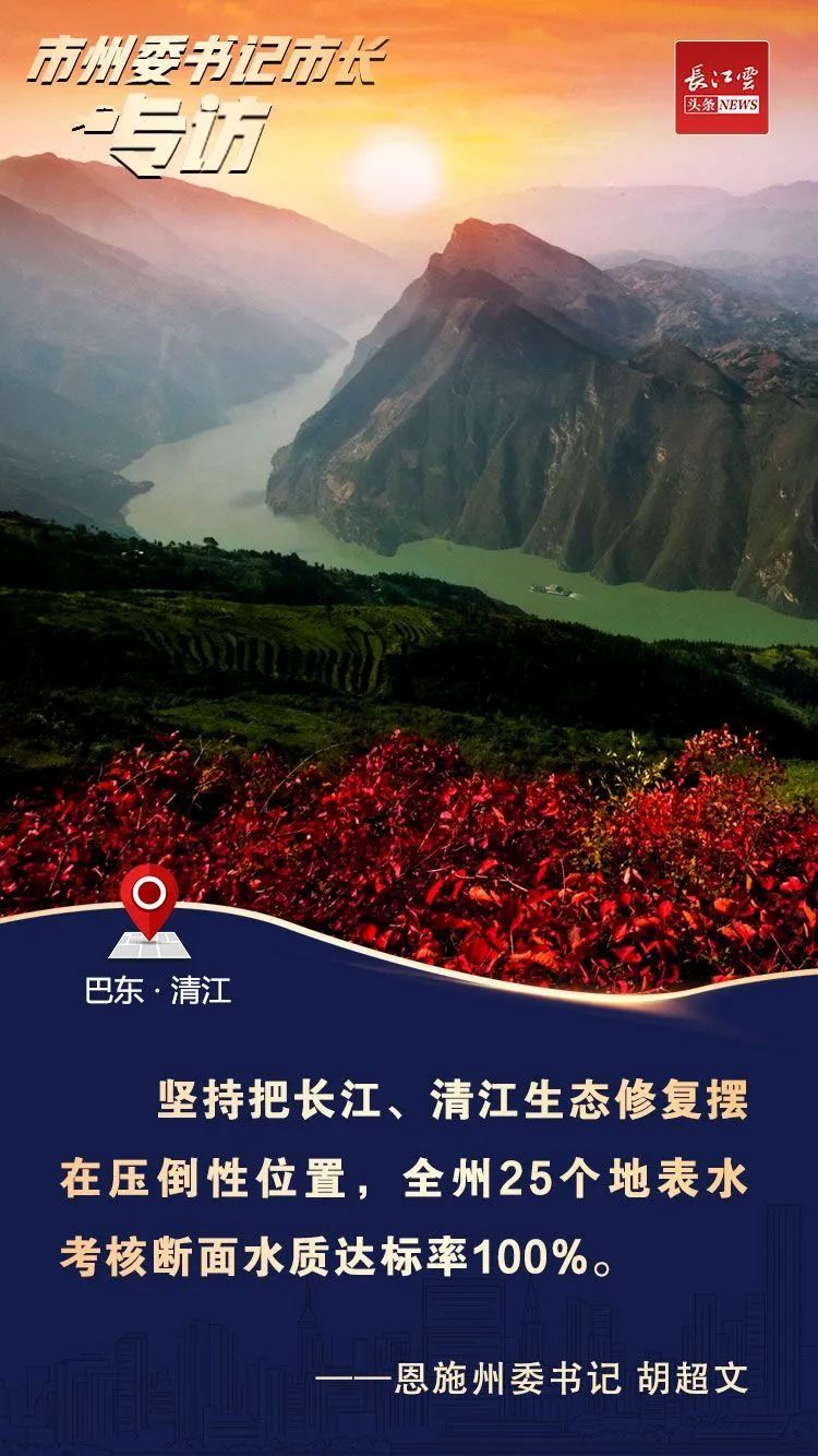 “源”字上站前哨。我州是长江入鄂首站,是清江发源地,为让“一江清水永续东流”,我们推进长江巴东段和清江综合治理,实施长江、清江“十年禁渔”,全力守护生态环境安全。