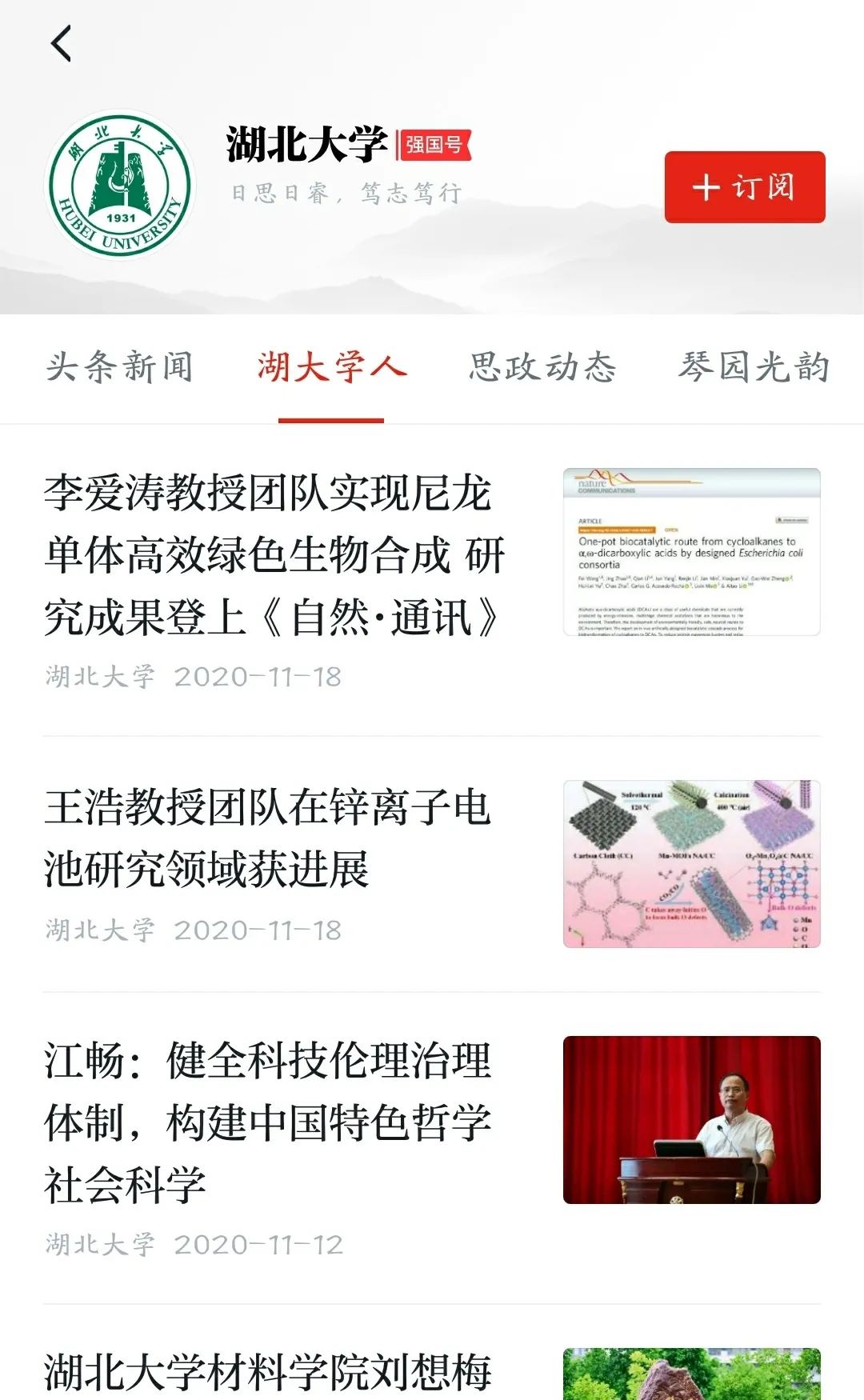 也可以用学习强国APP扫一扫下方码,关注“湖北大学”进行订阅