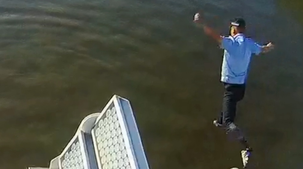 韩靖见状毫不迟疑,纵身一跃跳入约30米高的江中,以最快速度游向轻生女子,奋力将其抓住并拉出水面,成功营救上岸。