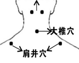 哮喘、慢性阻塞性肺病、慢性支气管炎、慢性鼻炎、咽炎等,选取图中肺俞、厥阴俞及定喘等穴位,可贴敷4-6小时,鼻炎患者可加贴迎香穴,由于迎香穴位于面部,建议成人敷贴时间在半小时内,小儿不超过20分钟,以免皮肤破损影响美观,慢性咽炎患者可加贴天突穴。
