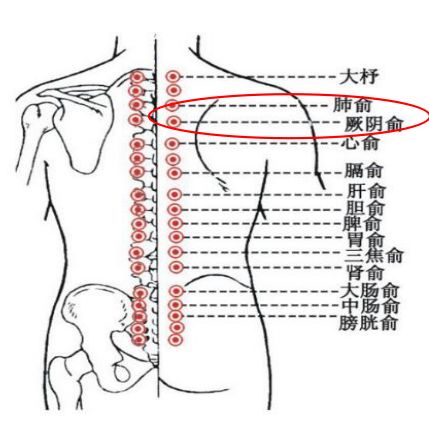可选取上图中肺俞及图中厥阴俞以及患处局部选穴。
