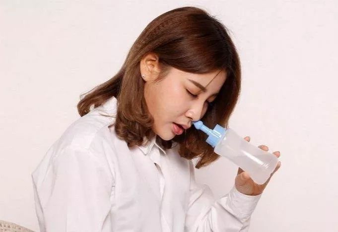 用大号注射器抽取生理盐水,头偏向一侧,张口自然呼吸,防止呛咳,从上方鼻孔冲入盐水,从另一侧流出,便完成了一次鼻冲洗。
