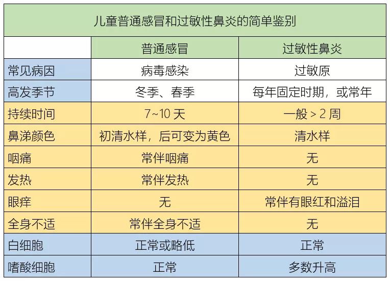 那么如何区分孩子是感冒还是过敏性鼻炎呢?简单!看这里: