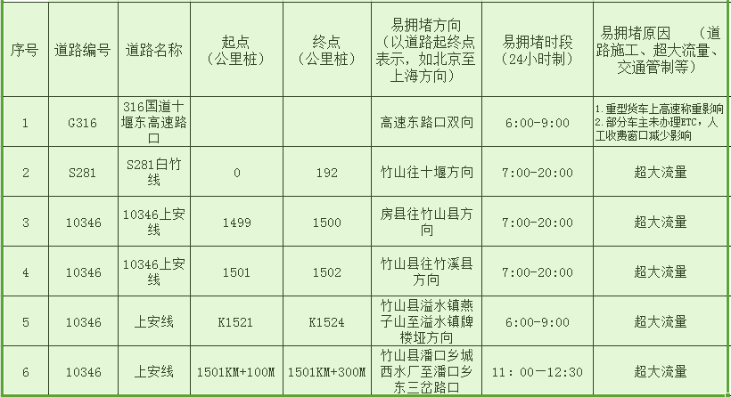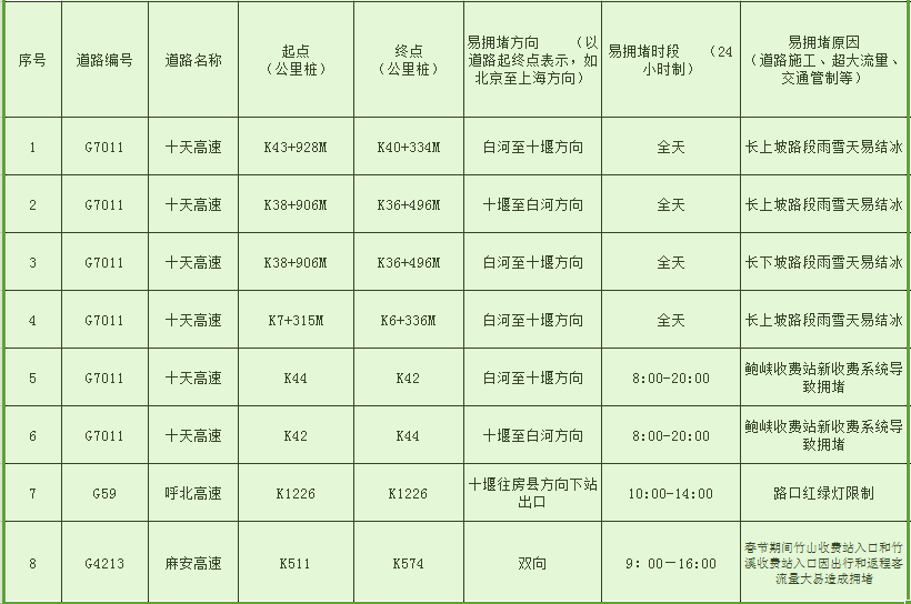 根据往年经验判断,今年春运十大拥堵路段分别是: