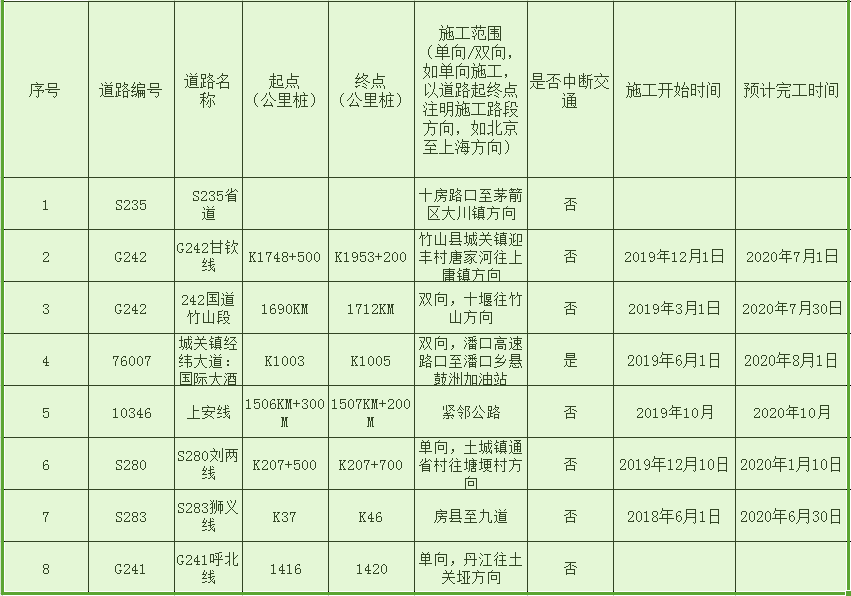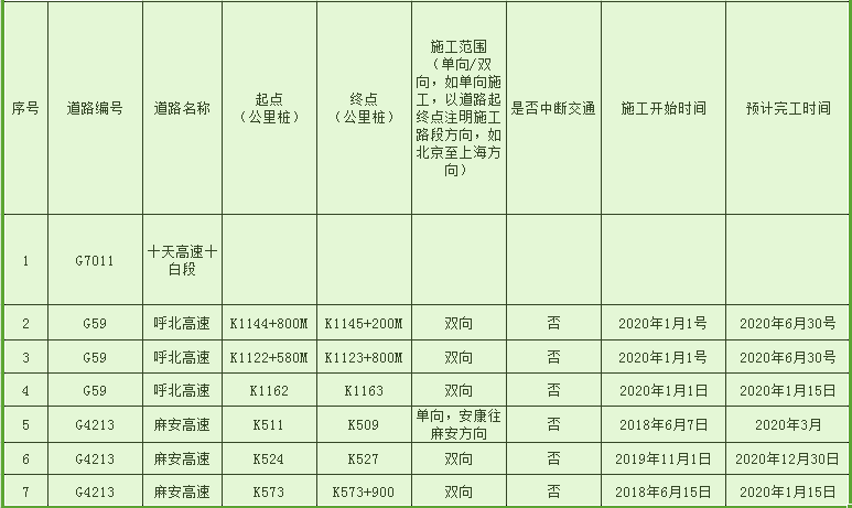 京港澳高速蔡甸至武汉北、沪渝高速豹獬至鄂州、沪渝高速北河至仙桃、沪渝高速蕲春至武穴、沪蓉高速汉川至东西湖、汉蔡高速红庙互通、沪蓉高速东西湖互通、沪蓉高速横店互通、沪渝高速黄梅互通、恩广高速罗针田互通。