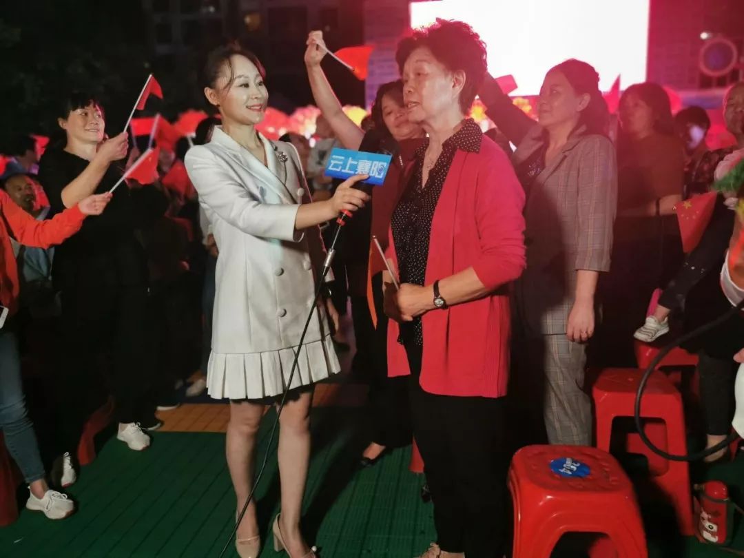在当天晚上的活动现场,檀溪湖社区党委第一书记肖明芝也通过直播连线的形式,与广电演播大厅的主会场进行了互动。