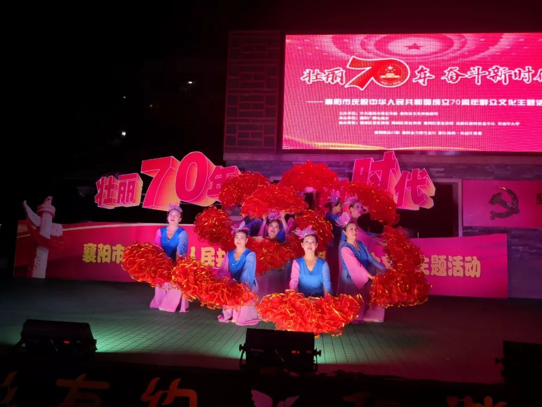 70年的荣光与梦想,70年的辉煌与感动,凝聚在每一个襄阳市民的心里,也烙印在新中国的里程碑上。据了解, “壮丽70年 奋斗新时代”群众文化主题活动自发起以来,吸引了全市各界群众积极参与,近200个节目踊跃报名,1000多人参加演出,群众文化展演进社区进广场,吸引了众多市民的关注和喜爱。