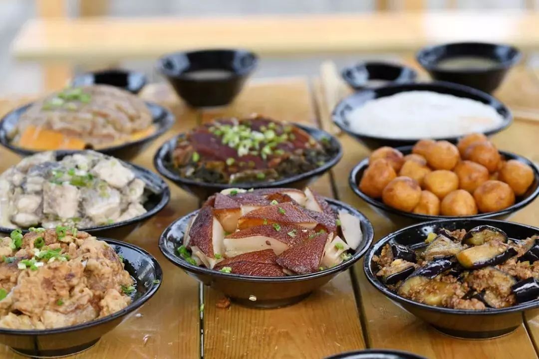 粉蒸肉、炸鱼、蒸糯米、红薯丸子