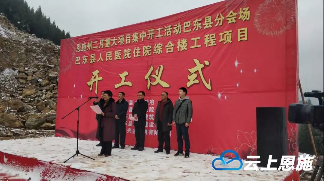 恩施州二月重大项目集中开工活动巴东分会场分别在巫峡口景区安置区建设项目现场和县人民医院住院综合楼建设项目现场进行。