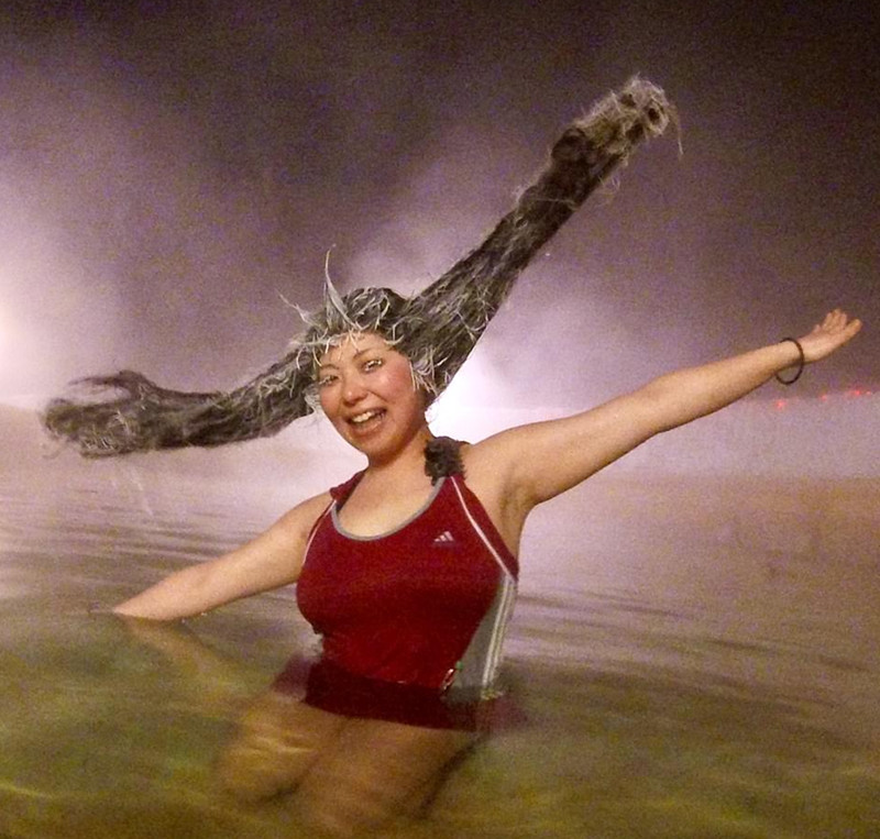- 挑战者只要是在冬季参与并拍下照片,都被认可有效参赛,比赛结果将在3月份公布。该景点负责人说:“比赛的目的是尽可能创造出最具创意的发型,你泡在温泉里,让水蒸气聚集在你的头上,冷空气会让你的头发结冰。”