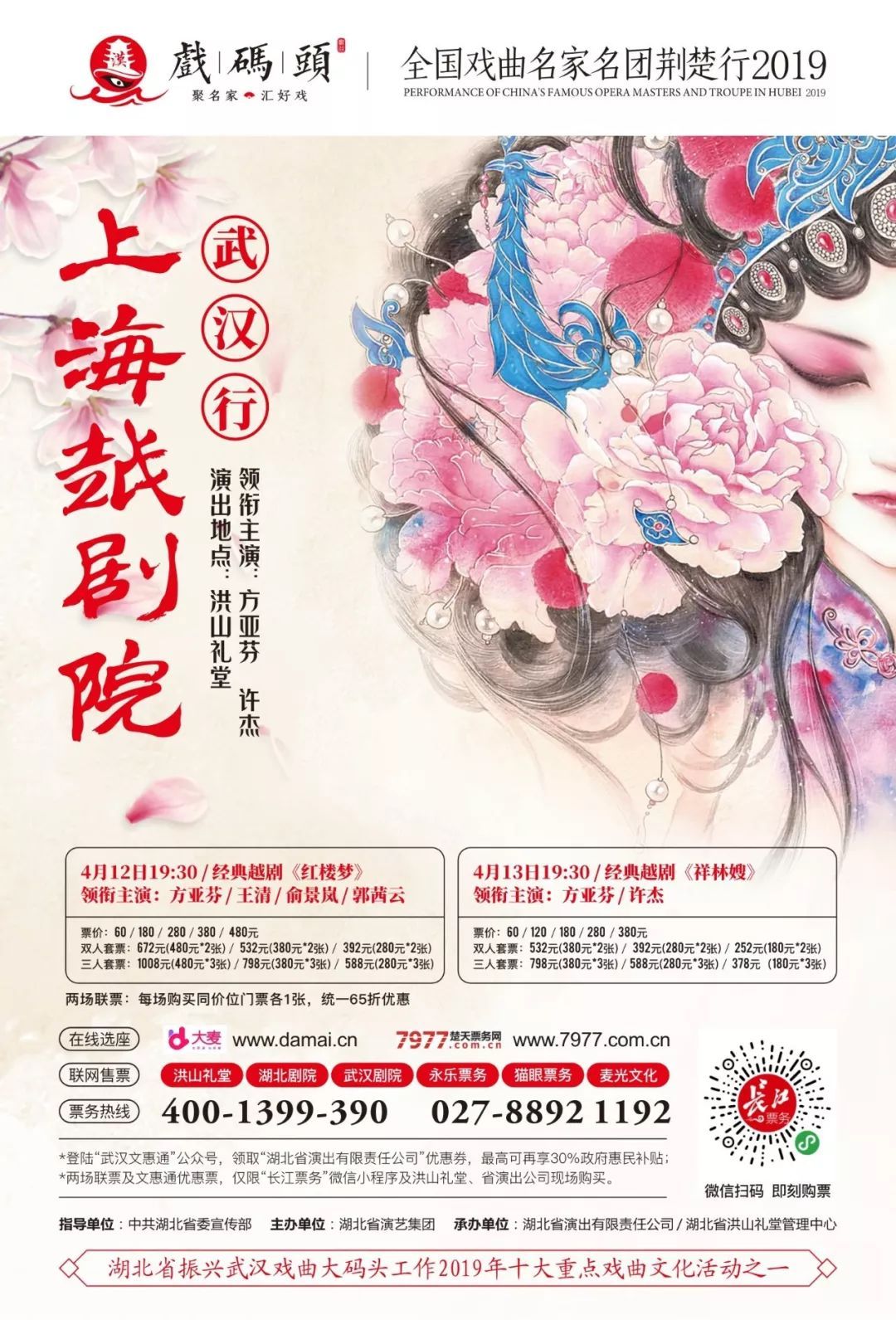 2019年“戏码头——全国戏曲名家名团荆楚行”活动的另一台重头戏,上海越剧院也应邀来鄂,由方亚芬、许杰领衔,率先于4月12日至13日在洪山礼堂献演尹袁版《红楼梦》和《祥林嫂》,4月16日在宜昌献演《红楼梦》,目前门票正在热销。