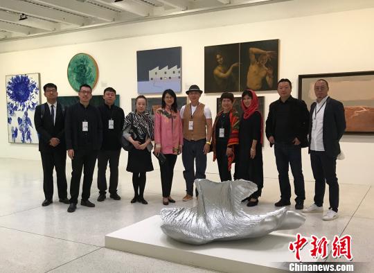 图为中国驻巴西大使馆文化参赞舒建平(右二)参观双年展。驻巴西使馆供图