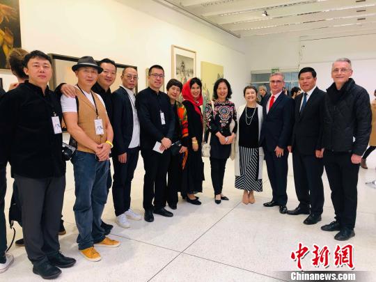 图为中国驻巴西大使夫人卢燕柳参赞(左五)参观双年展。驻巴西使馆供图