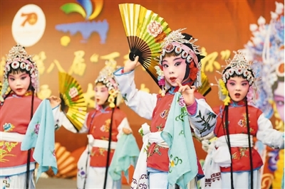 10月28日,来自北京柳林少儿戏剧社的孩子们参加第八届“万丰晓月”杯京剧票友大赛展演。此次大赛由被誉为“京城梨园第一乡”的丰台区卢沟桥乡承办,来自全市52家票房、近500名票友报名参赛。