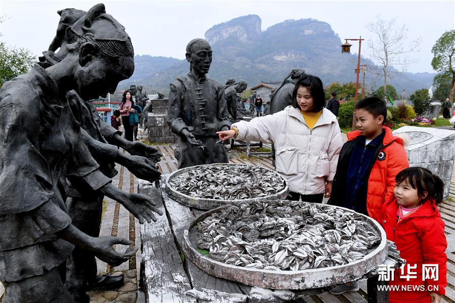 12月1日,游客在武夷山大红袍体验中心参观制茶雕塑群。 新华社记者 张国俊 摄