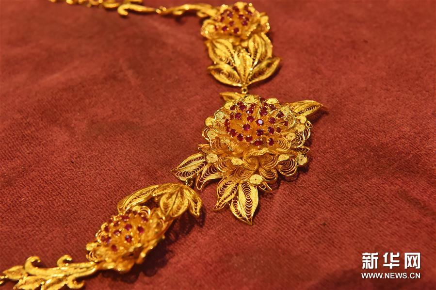董瑞京制作的一款花丝镶嵌工艺项链(12月17日摄)。新华社发(陈钟昊 摄)