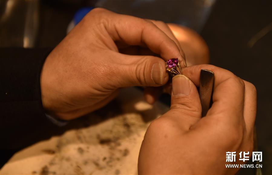 12月17日,董瑞京制作花丝镶嵌工艺首饰。新华社发(陈钟昊 摄)