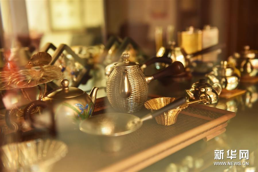 董瑞京位于北京的工作室中陈列的花丝镶嵌工艺品(12月17日摄)。新华社发(陈钟昊 摄)