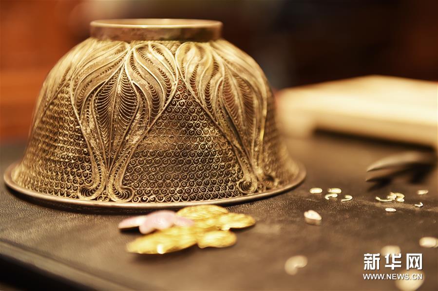 花丝镶嵌工艺制成的银碗(12月17日摄)。新华社发(陈钟昊 摄)