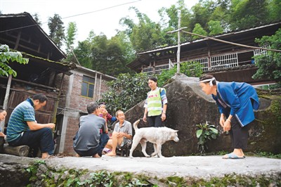 吴纯娟(右二)走村入户,了解村民近况,帮助他们解决生活中的急难愁盼。