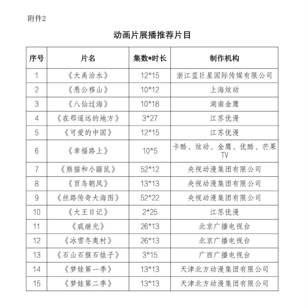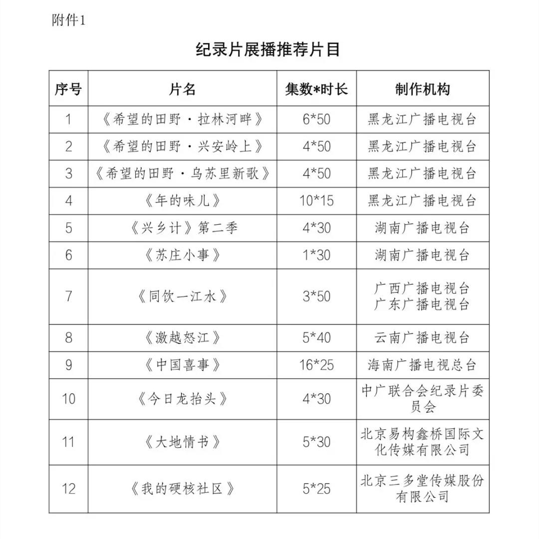 此外,通知还对部分纪录片、动画片进行展播推荐(见下图)。