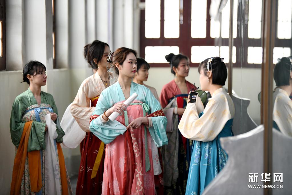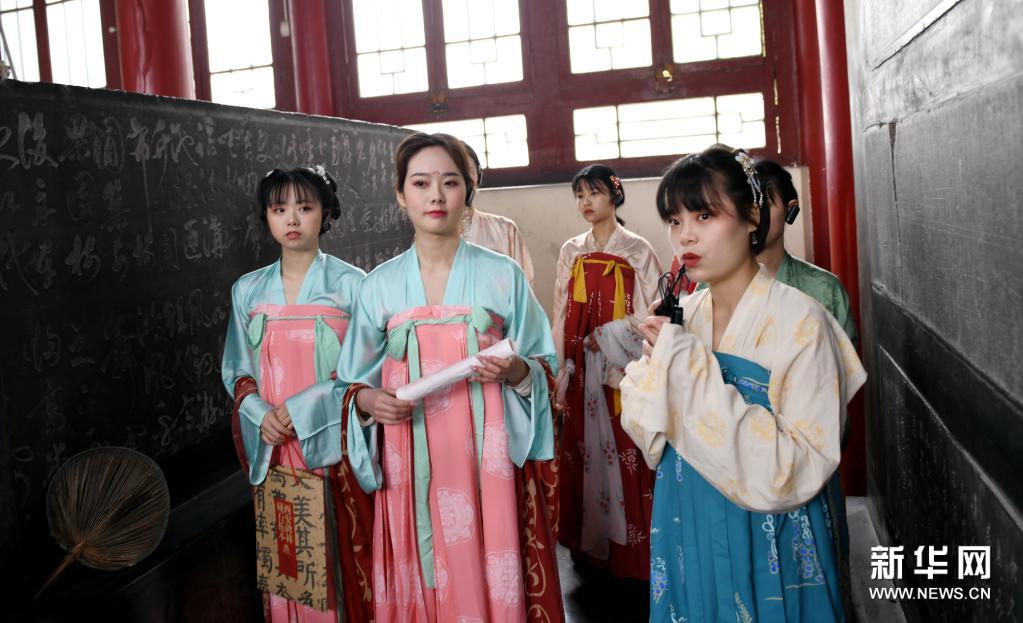 4月14日是农历三月初三,也是中国传统节日上巳节。为弘扬传统民族文化,彰显碑林文化特色,西安碑林博物馆联合华夏文创举办上巳节雅集活动,讲解员和汉服爱好者们身着汉服,参与古乐表演、拓印展示等活动,展示中华传统服饰的魅力。新华社记者 李一博 摄