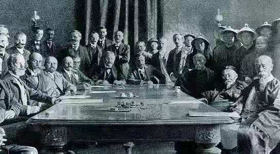 回顾百年历程,我们走过的道路充满崎岖坎坷。其中,1901年9月,清政府派庆亲王奕劻、直隶总督北洋大臣李鸿章与英法美德意奥日俄八国以及荷、西、比三国签订《辛丑条约》(Austria-Hungary, Belgium, France, Germany, Great Britain, Italy, Japan, Netherland, Russia, Spain, United States and China -- Final Protocol for the Settlement of the Disturbances of 1900),中国彻底陷入半殖民地半封建社会的泥沼,于今120年矣。