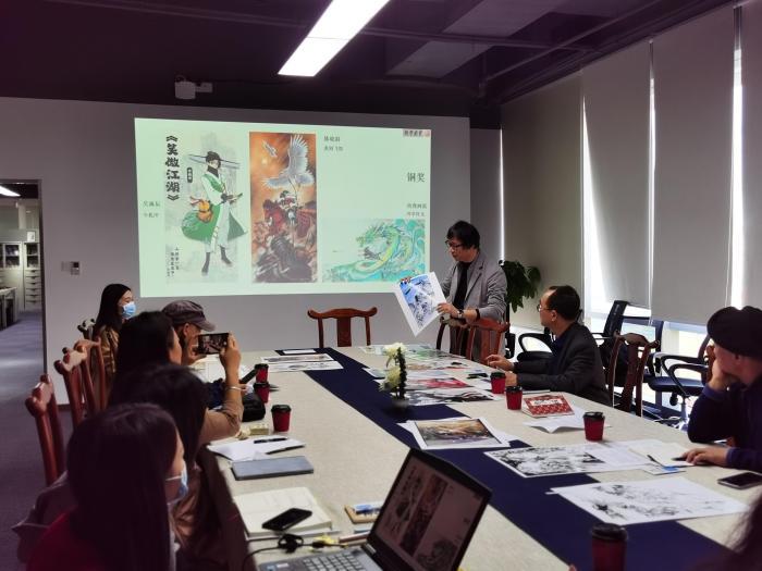 李志清1997年与金庸创立明河(创文)出版有限公司,曾将《射雕英雄传》《笑傲江湖》改编为漫画,出版画集《水墨金庸》。金庸先生曾为李志清题字“飘逸画笔,图风云人物”。他的画作多次被选作金庸小说封面,深受广大金迷喜爱。本次大赛还邀请到广东财经大学艺术与设计学院副院长王少斌、广东东软学院数字媒体与设计学院院长黄迅、广东财经大学人文与传播学院副院长文远竹、广州市朗声图书有限公司总编辑何娴出席评审。