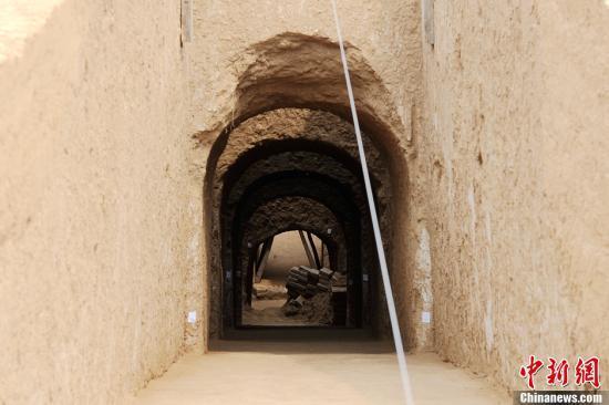 资料图:2013年8月,陕西省考古研究院在西咸新区空港新城园区南大道项目建设用地的考古工作中,发现一座带有5个天井的唐代墓葬,根据出土墓志记载,该墓墓主为唐中宗昭容上官氏,即唐代女诗人上官婉儿,葬于唐景云元年(710年)8月。图为进入墓室的穹形墓道。张远 摄