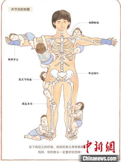 《我的妈妈》内文图,展现了产后妈妈会发生的骨骼疼痛 接力出版社供图