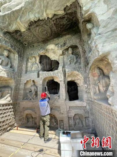 第16窟数字化保护工作施工现场。 云冈研究院供图