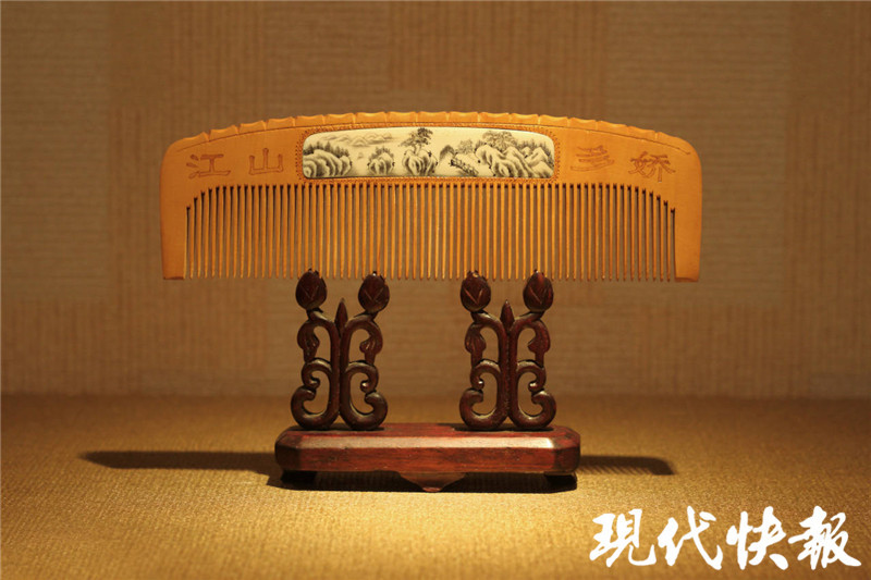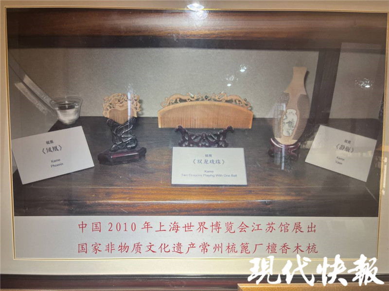 说起镇馆之宝,贾玮表示,1915年,常州梳篦与国酒茅台一同获得美国旧金山巴拿马国际和平博览会银奖;1926年,常州梳篦又在美国费城国际博览会上夺得金奖,从此以“中华梳篦之宗”扬名世界。原先馆里珍藏着两枚世博会奖牌原件,如今原件被收进了常州市档案馆。此外,精品“檀香雕刻双龙戏珠”梳篦采用老檀香木双面镂空雕刻,很好地体现出双龙戏珠的场景,曾在2010年上海世博会江苏馆展出。