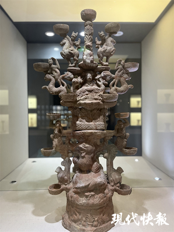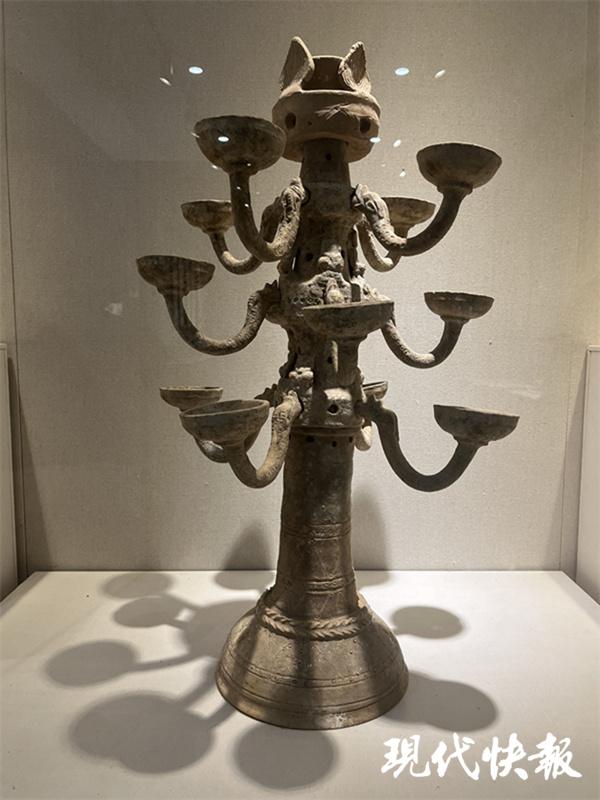 “最神秘的油灯是十六国时期的陶质星象纹底座带佛像十三龙头枝灯。十六国时期十分短暂,发现的油灯也非常少。”刘焕焕说,油灯上8个佛像分上下两层排列,十分生动。每枝灯盏衔接处是龙头造型,用插入式连接,底座覆碗上布满星宿。就目前出土的情况看,这种星宿纹在之前和之后的油灯中极为少见。