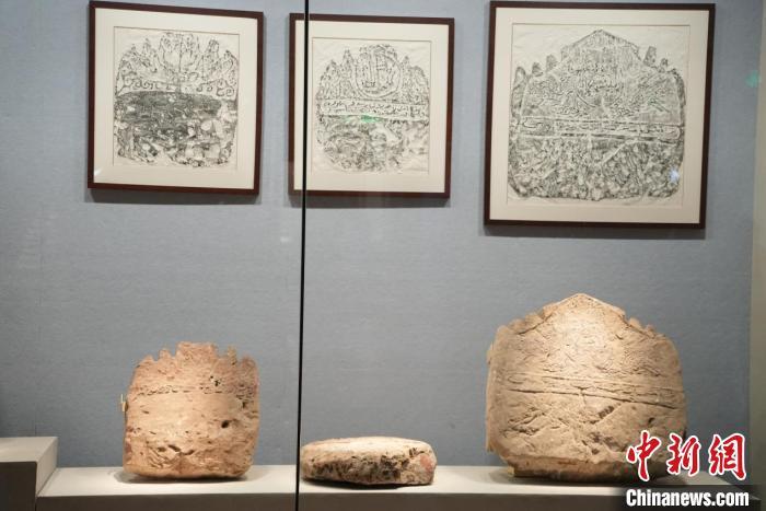 图为海南省博物馆14号展厅内展出的三方珊瑚石墓碑。海南省博物馆供图