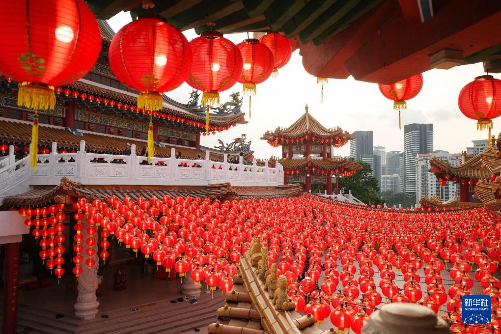 近日,马来西亚吉隆坡天后宫每晚点亮几千只红灯笼,迎接农历甲辰龙年的到来。