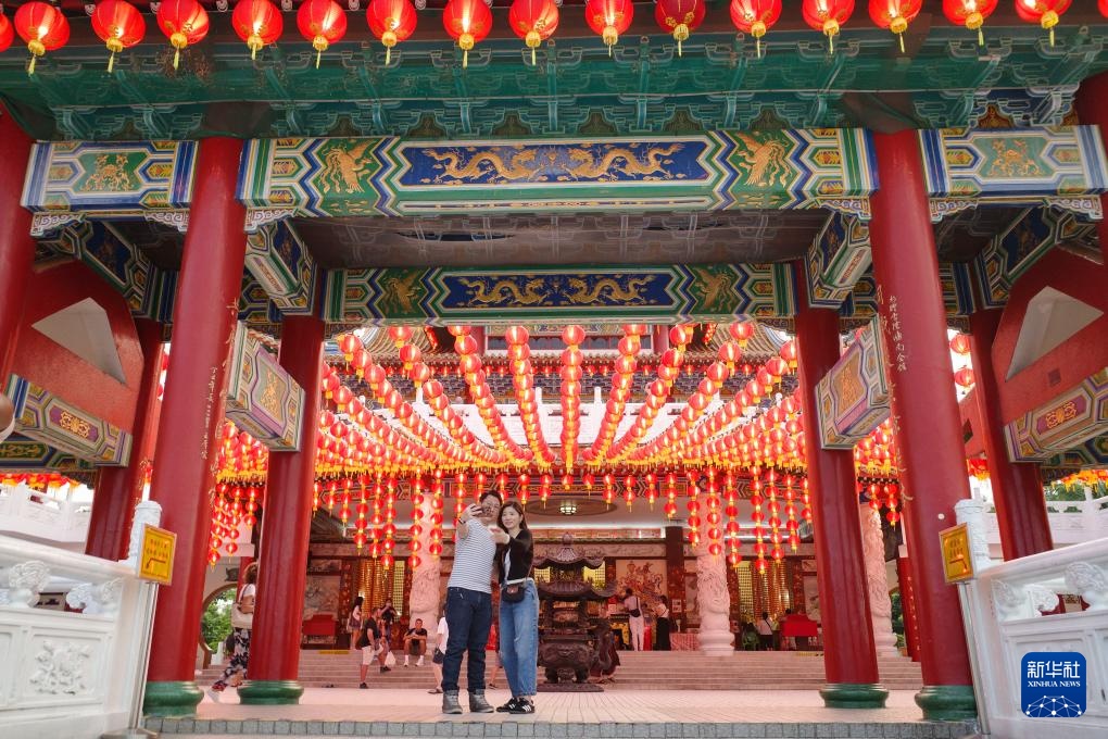 1月21日,游客在马来西亚吉隆坡天后宫拍照。