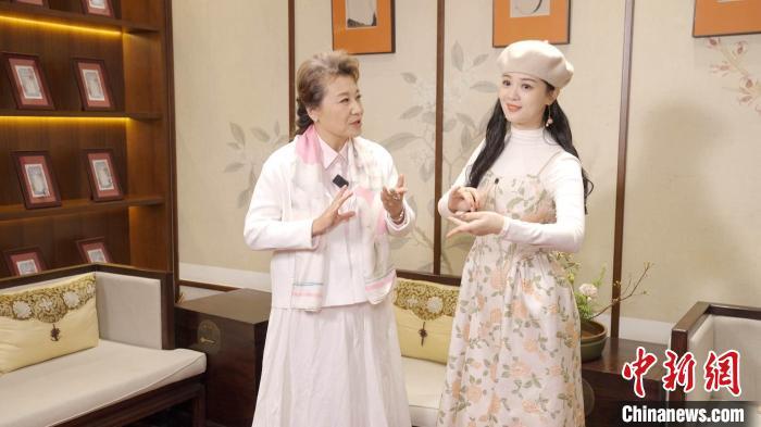豫剧名家小香玉(左)给越剧演员裘丹莉辅导豫剧。 节目组供图