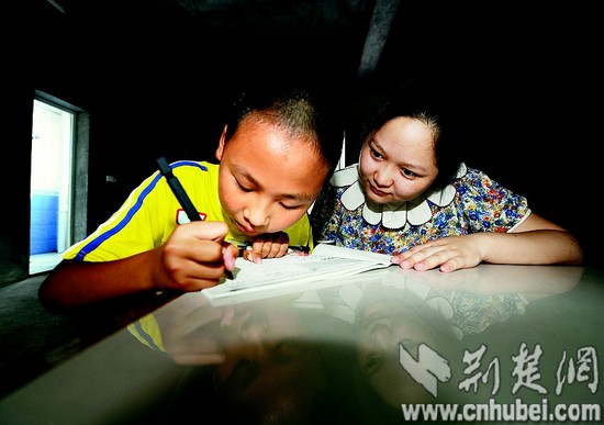 图为:8日,简曼丽指导刘俊杰做暑期作业。(记者张朋 本报视界网 温宜飞 摄)