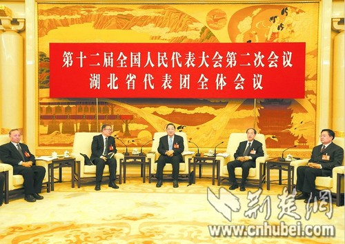 楚天都市报北京电(本报记者刘娜 张进 翟兴波)昨日下午,湖北代表团举行全体会议,审议政府工作报告。中共中央政治局常委、全国政协主席俞正声来到湖北代表团,和代表们一起审议政府工作报告。