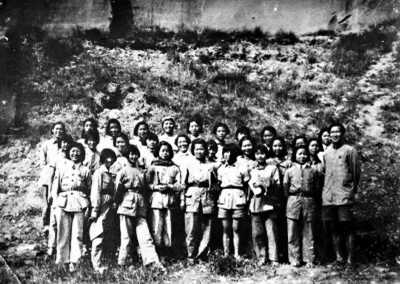 1939年鲁艺排演《黄河大合唱》时,冼星海在排练间隙和女声部师生们合影。前排右一为冼星海,前排左四为莎莱。